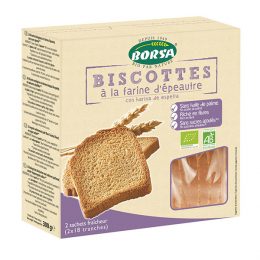INGRÉDIENTS: Farine de blé* (85%), sucre*, huile végétale (tournesol*),levure, oeufs en poudre* (1.6%), sel, gluten de blé*, agent de traitement de la farine : acide ascorbique. Petits Pains Grillés Briochés Borsa : pour le petit-déjeuner ou le goûter, nature ou avec un peu de beurre et de confiture, pour allier plaisirs gourmand et craquant. Fabriquer sans huile de palme et source de fibres.578Fr Ajouter au panier